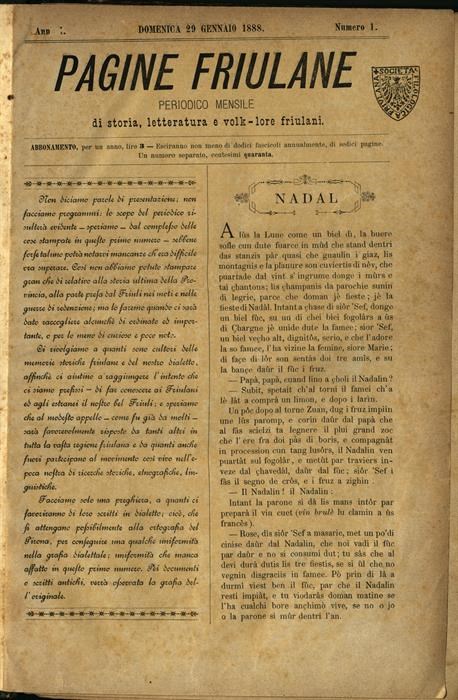 "Periodico mensile dì storia, letteratura e volk-lore friulani"