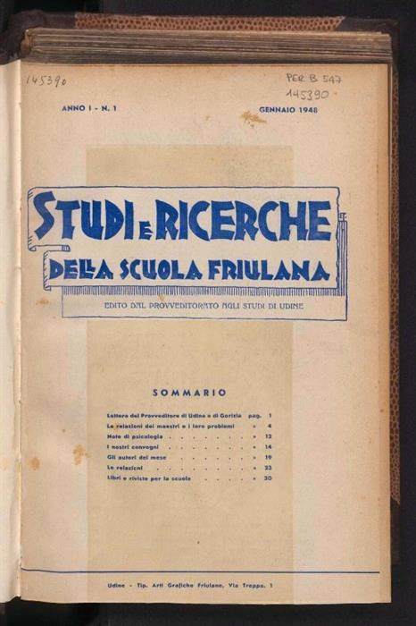 "Bollettino mensile della scuola friulana in cui saranno accolti e resi noti agli insegnanti dell'ordine medio ed elementare spunti ed esperienza di pedagogia e di didattica"